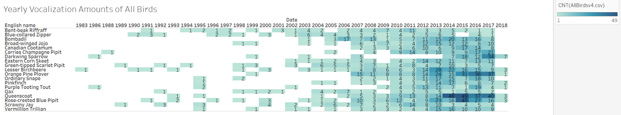 Hello! This is a project focused on the visualization of a bird population dataset.